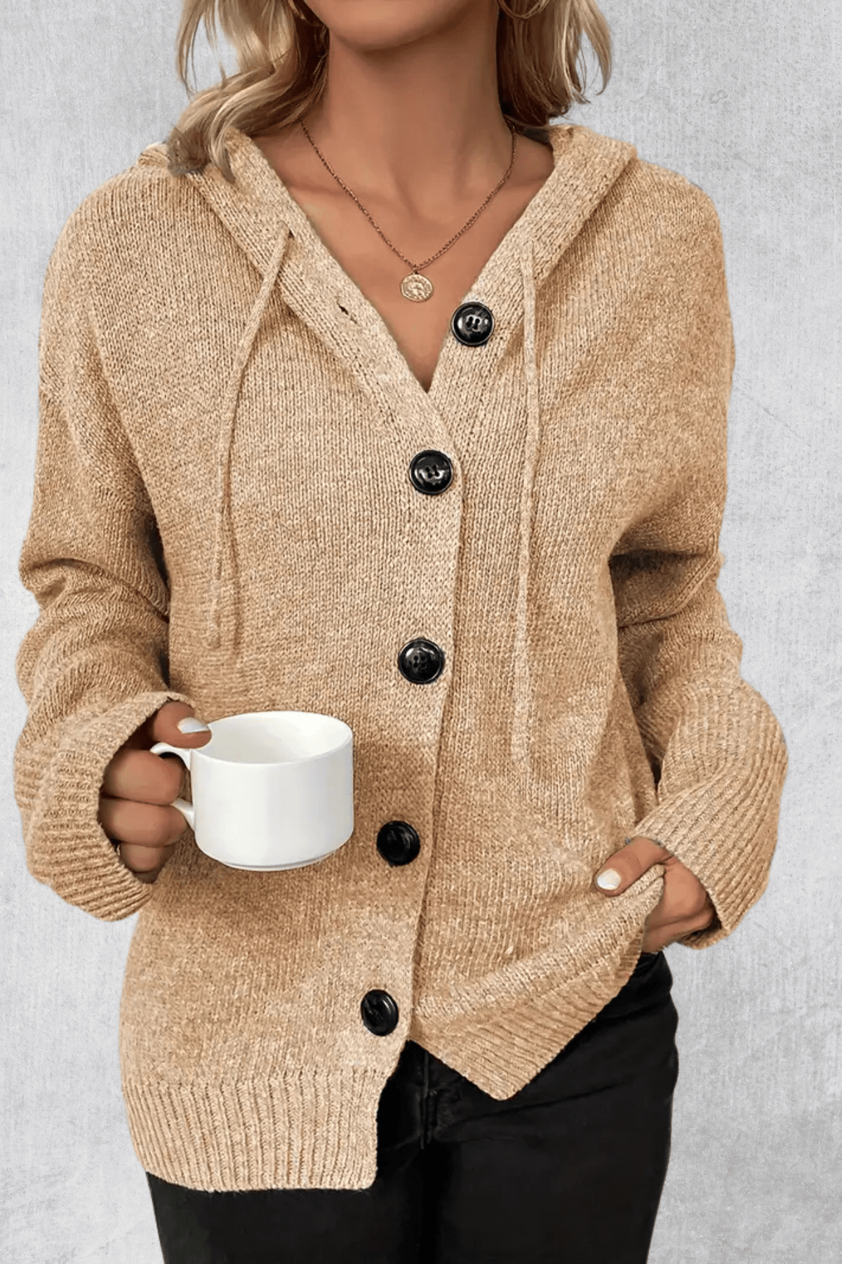 • Modello classico con bottoni – i bottoni funzionali rendono facile l'indossare e permettono di portare il maglione aperto o chiuso, adattandosi facilmente ai cambiamenti di temperatura.