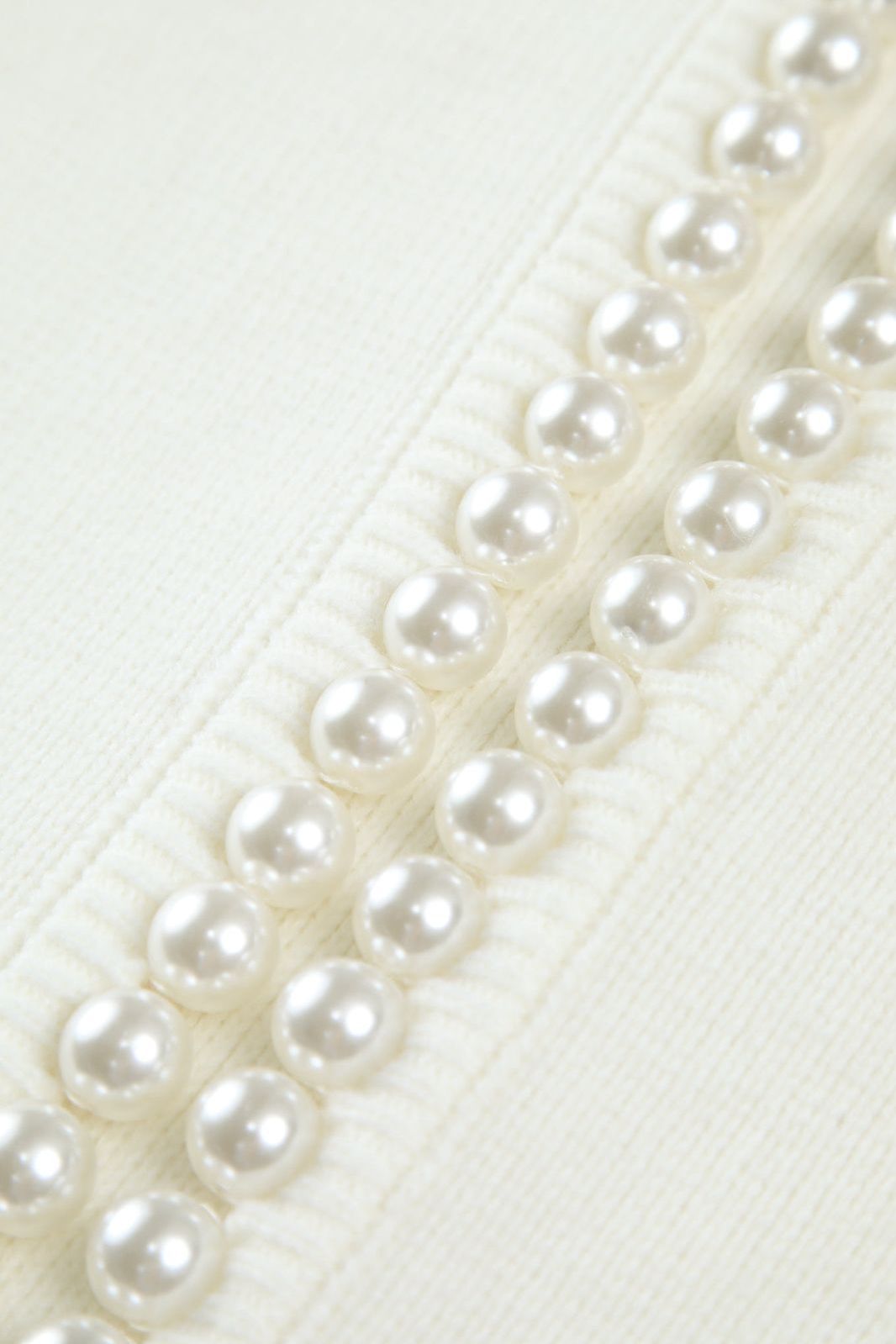 Questo elegante maglione è progettato con un collo rotondo pulito e dettagli perlacei eleganti che aggiungono una nota raffinata all'outfit. Il morbido knit si unisce a maniche lunghe e polsini elasticizzati, creando una silhouette pulita e curata. I bordi strappati dell'orlo inferiore e delle maniche portano un delicato contrasto moderno ai classici dettagli perlacei.