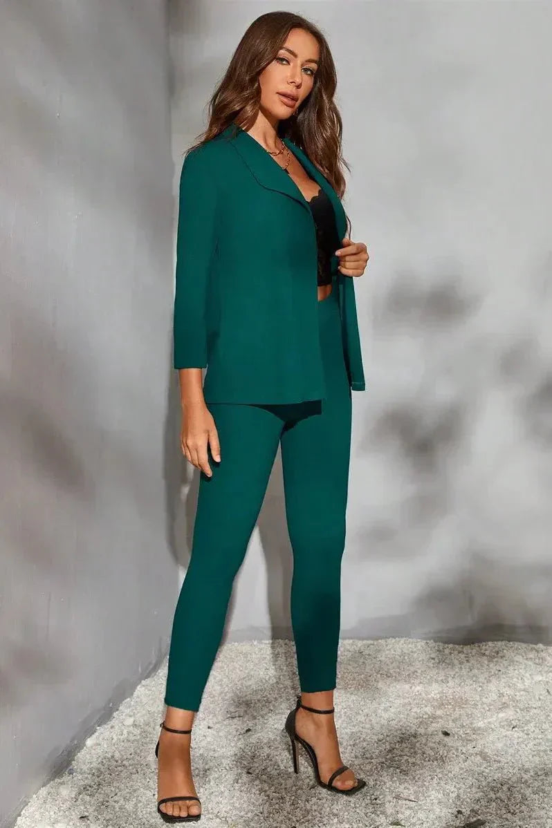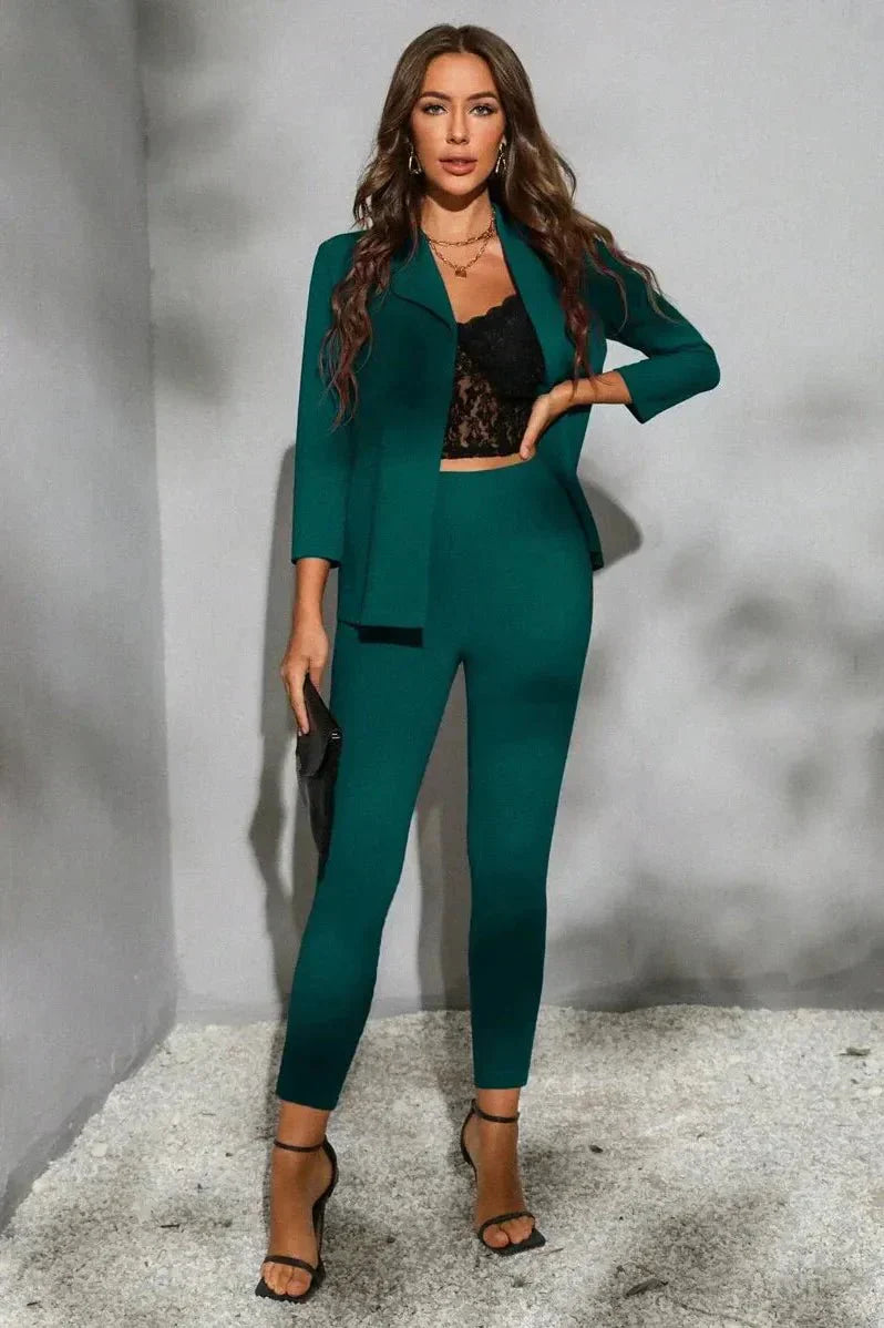 Il set Mira ridefinisce l'eleganza professionale in modo moderno. La lunga parte superiore asimmetrica con dettagli alla moda e i pantaloni slim coordinati creano un insieme blu scuro che emana stile, nobiltà e un fascino discreto. Ideale per le stagioni più fresche: Mira combina un aspetto sofisticato con un design impressionante — perfetto per le donne che vogliono fare colpo, ma allo stesso tempo muoversi con leggerezza.